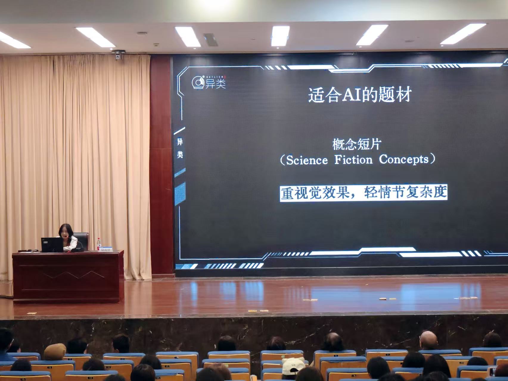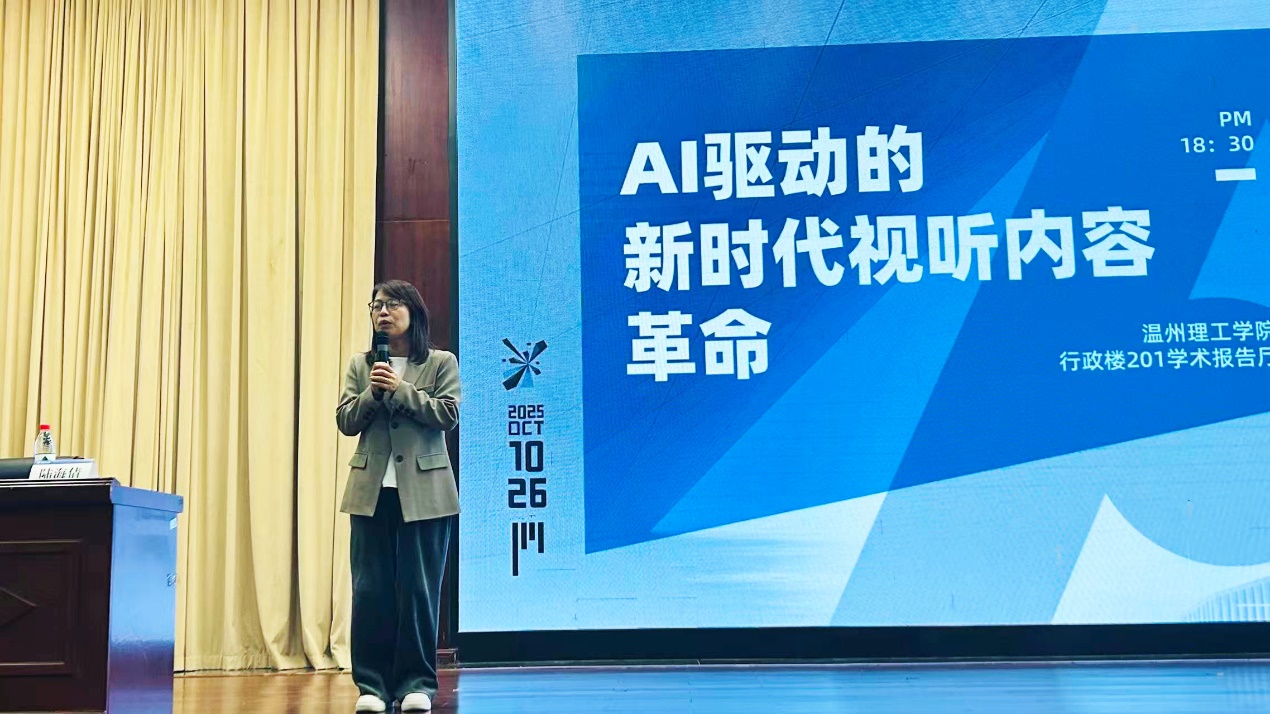 10月26日晚18:30,行政楼201学术交流中心座无虚席,异类Outliers品牌总经理陆海倩应邀为设计艺术学院师生带来了一场题为《AI驱动的新时代视听内容革命》的专题报告。设计艺术学院院长刘明刚、副院长叶芳、院长助理叶洲荣与学院师生共同参加了本次学术交流活动,叶芳副院长主持讲座。